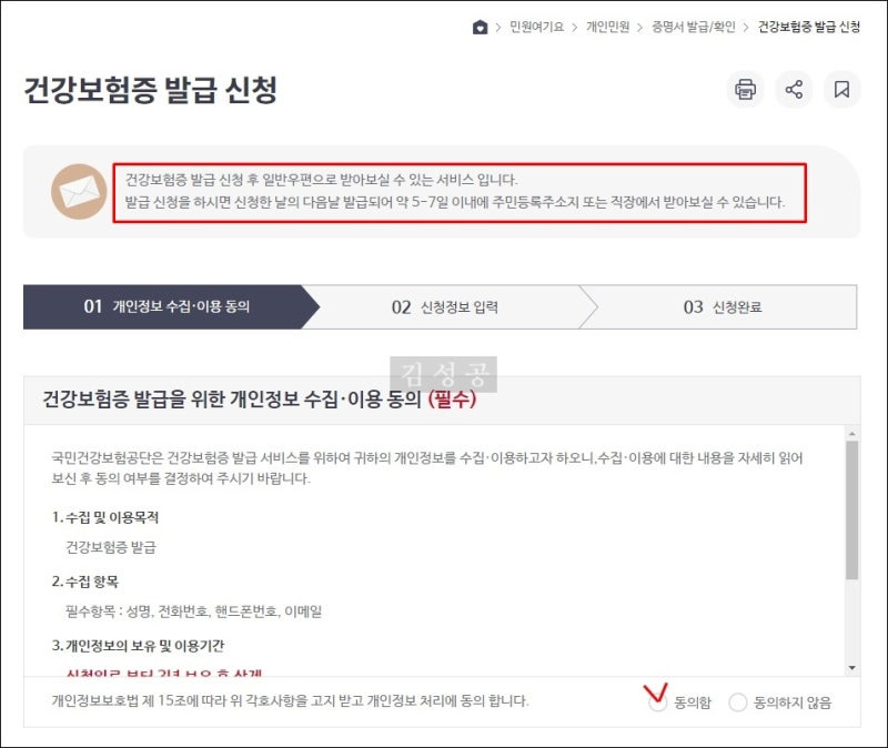신청이 완료되면, 건강보험증은 보통 5~7일 이내에 우편으로 발송됩니다.