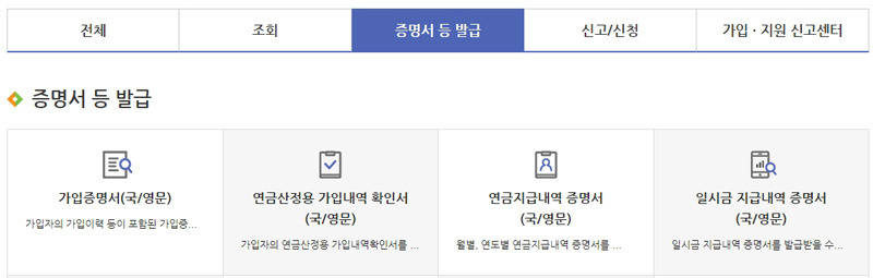 국민연금 가입증명서, 연금산정용 가입내역 확인서, 발급 과정