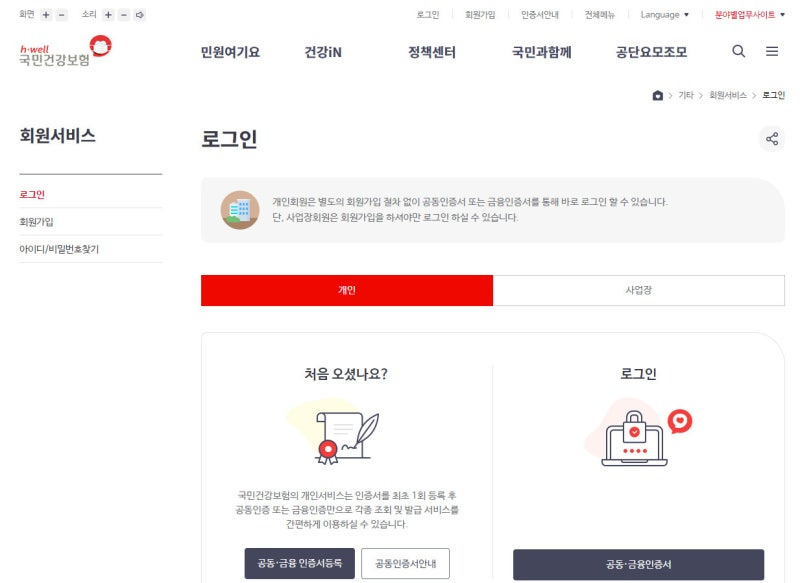- 국민건강보험공단 홈페이지 접속 : 국민건강보험공단 홈페이지에 접속합니다. https://www.nhis.or.kr/nhis/index.do