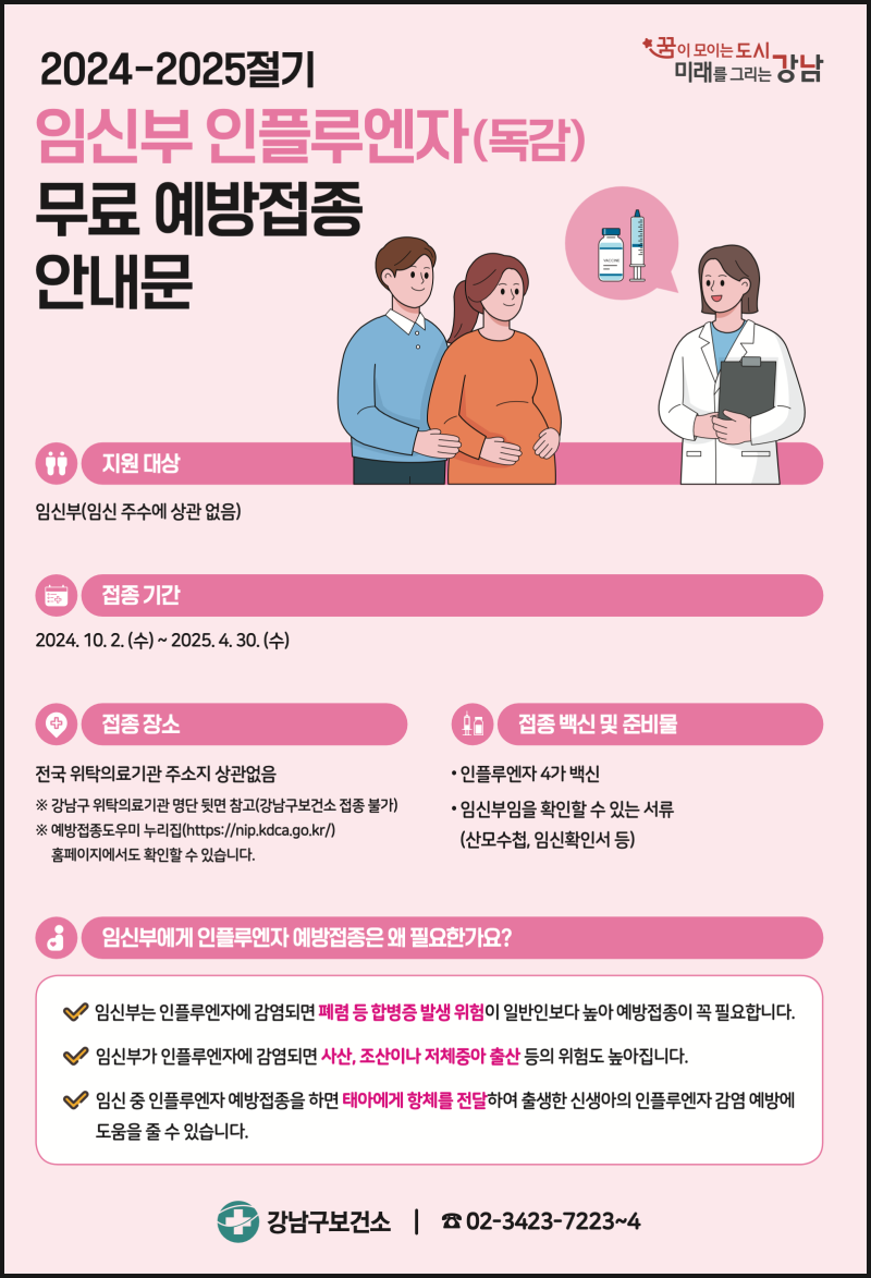 - 임산부 : 2024년 10월 2일부터 2025년 4월 30일까지
