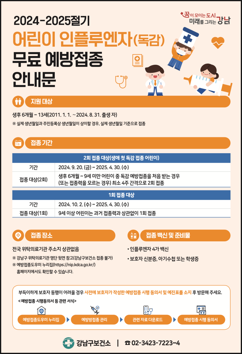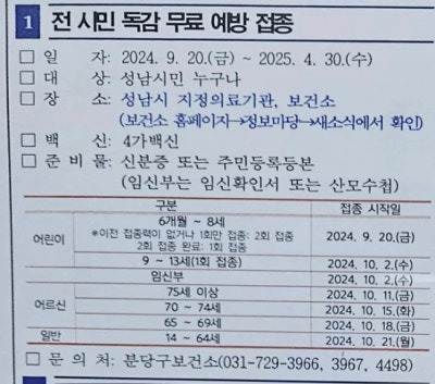 - 어린이(6개월~13세): 2024년 10월 2일부터 2025년 4월 30일까지