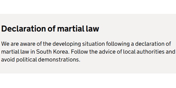 두 번째로, 비상계엄령이 해외 여행에 미치는 영향을 알아보겠습니다. 최근 한국 정부가 비상계엄령을 선언함에 따라 해외 각국에서는 자국민의 안전을 고려하여 여행 경고를 발령하고 있습니다. 특히 미국, 영국 등의 국가들은 한국을 위험 지역으로 분류하며 자국민에게 한국 방문 자제를 권고하는 상황입니다. 이는 여행자들에게 큰 영향을 미칠 수 있습니다.