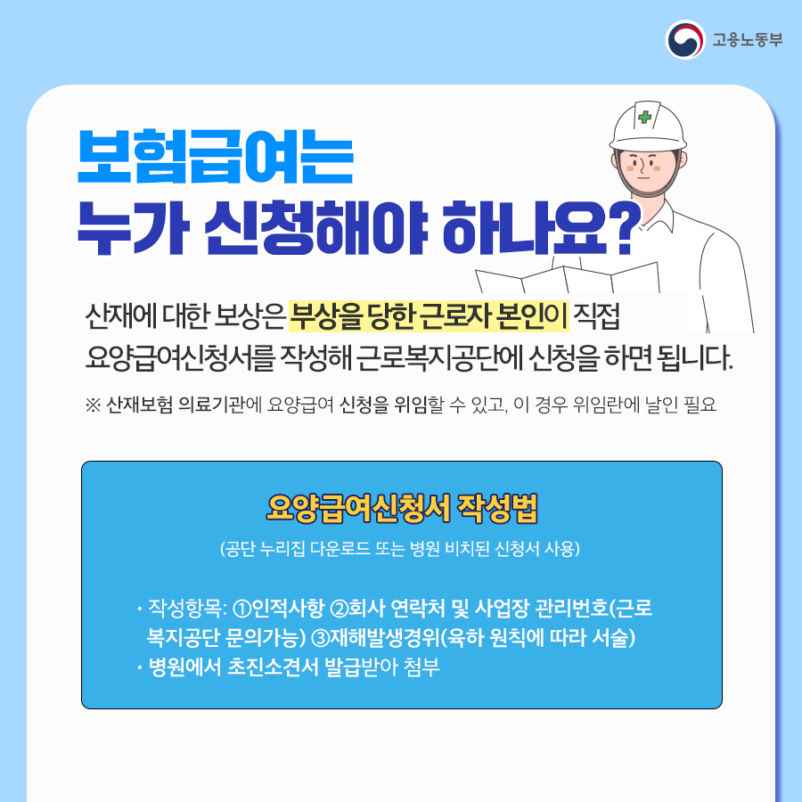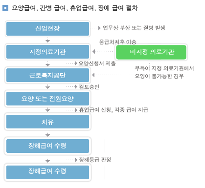 - 요양급여 : 치료에 필요한 비용을 지원합니다.