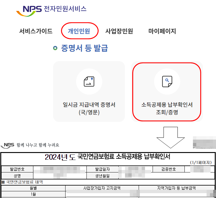 국민연금공단 홈페이지에서 소득공제용 납부확인서를 발급받는 방법입니다.