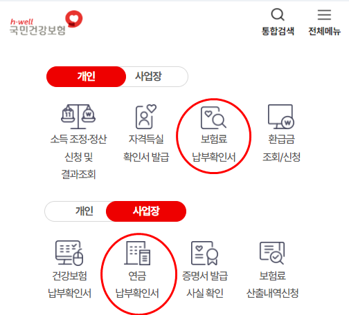 건강보험공단 홈페이지에서 확인서를 발급받는 방법입니다.