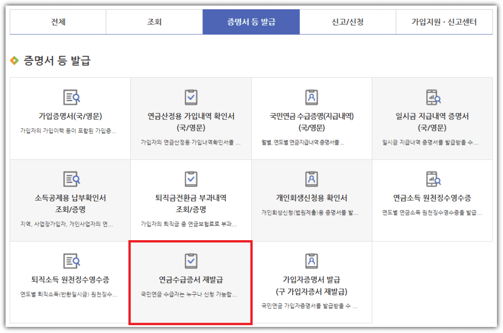 3. 연금수급증서 재발급 방법