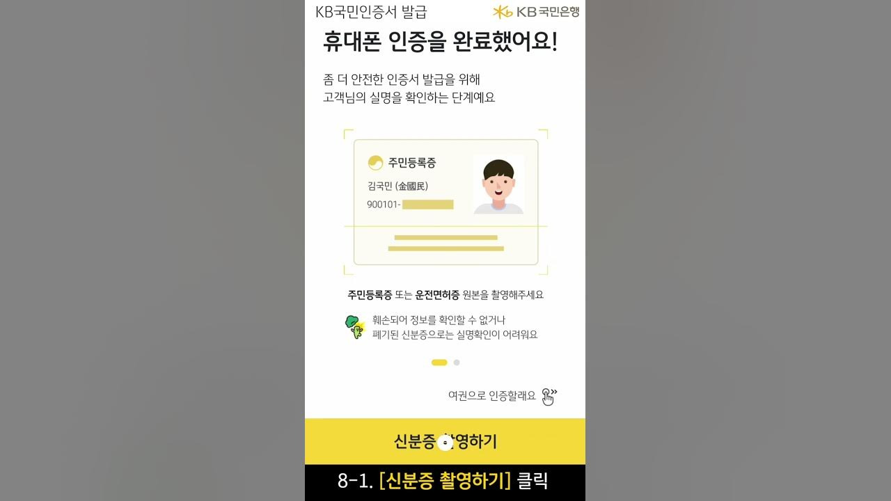- 신분증 촬영 : 신분증을 촬영하는 단계가 있어요. 주민등록증이나 운전면허증을 카메라로 찍어야 해요.