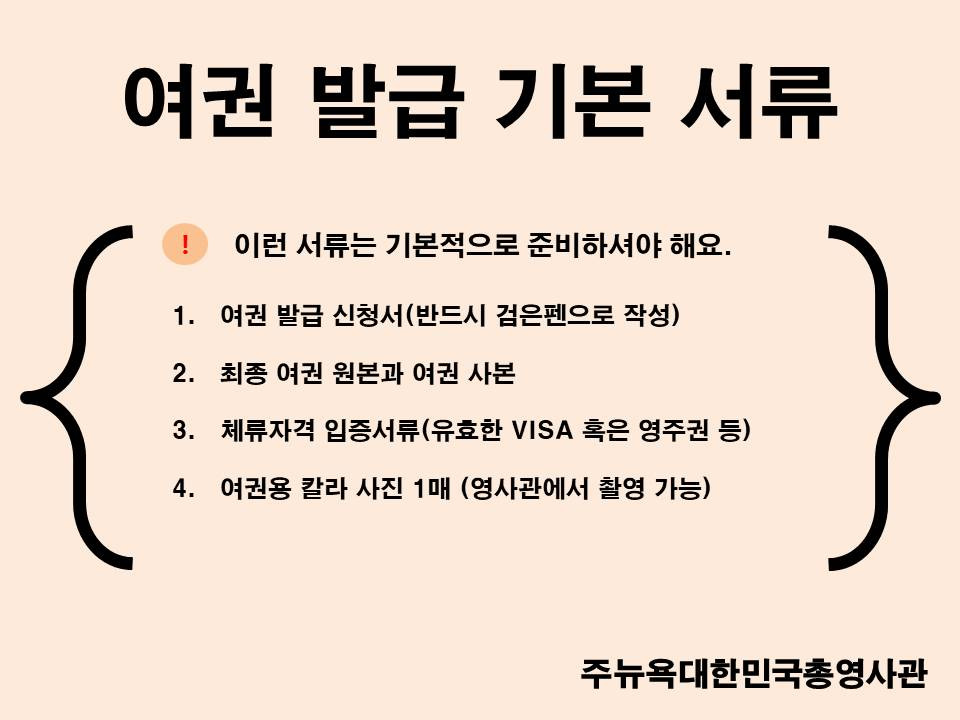 - 여권 발급에 필요한 기본 서류를 정리한 목록입니다.