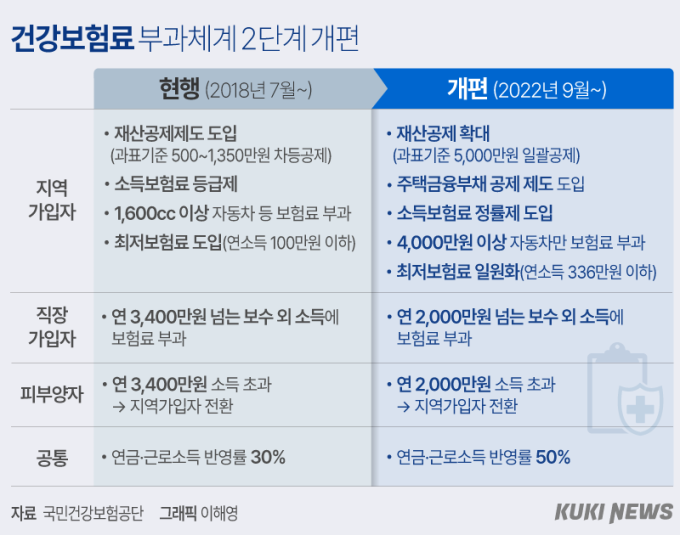 한국의 건강보험 제도는 시간이 지남에 따라 여러 차례 변화해왔습니다. 2018년 7월부터 시행된 새로운 보험료 체계에서는 소득 기준이 조정되었고, 2022년 9월부터는 자산 기준도 강화되었습니다.
