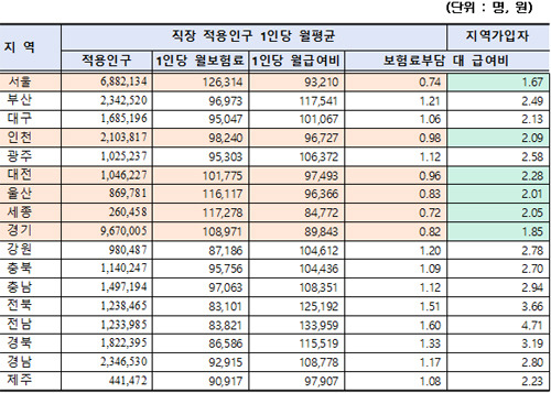 한국의 각 지역마다 보험료가 다르게 책정됩니다. 예를 들어, 서울과 부산, 대구 등 대도시에서는 평균적으로 보험료가 높게 책정되는 경향이 있습니다.
